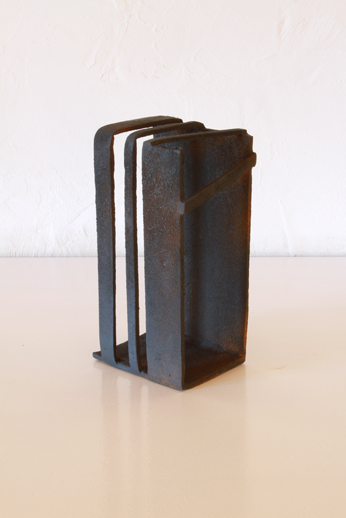 He de decir que una de las cosas que más me fascinó de ver a Cado Manrique en su taller, fue descubrir la manera que tiene de coger, tocar y colocar sus obras. Sus manos van directas a las piezas con un conocimiento intrínseco y sin ápice de duda de pesos y dimensiones. Cada creación, en cierto sentido metáfora de una idea arquitectónica abstracta, puede ser visualizada desde múltiples ángulos y posiciones que Cado maneja con total soltura y decisión. Allí donde la pieza toma su equilibrio, su abertura y su óptima personificación, es donde la artista la sitúa para que exprese la máxima alegoría de la actualidad que denuncia.
