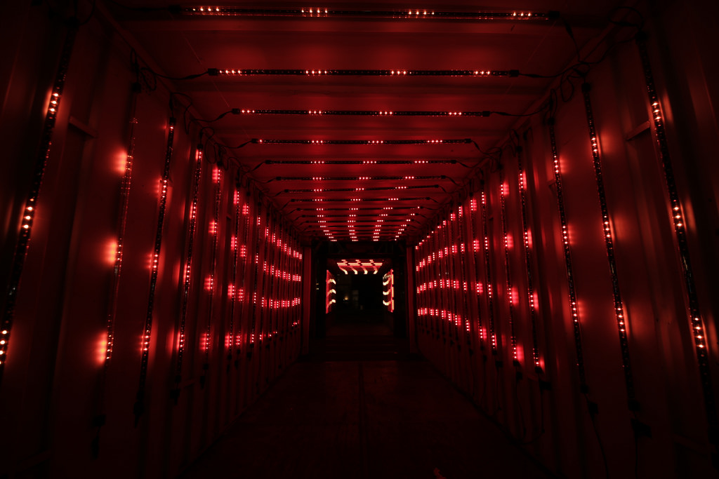 Per aquells qui no els coneixeu, Playmodes és un estudi de recerca audiovisual reconegut internacionalment per les seves instal·lacions immersives de llum i so. Originaris del camp de la videocreació en directe i de la música electrònica, la seva inquietud els ha portat a abandonar els marcs rectangulars de les pantalles tradicionals, cercant la colonització de l’espai a través d’instrumental de maquinari i programari que ells mateixos desenvolupen.