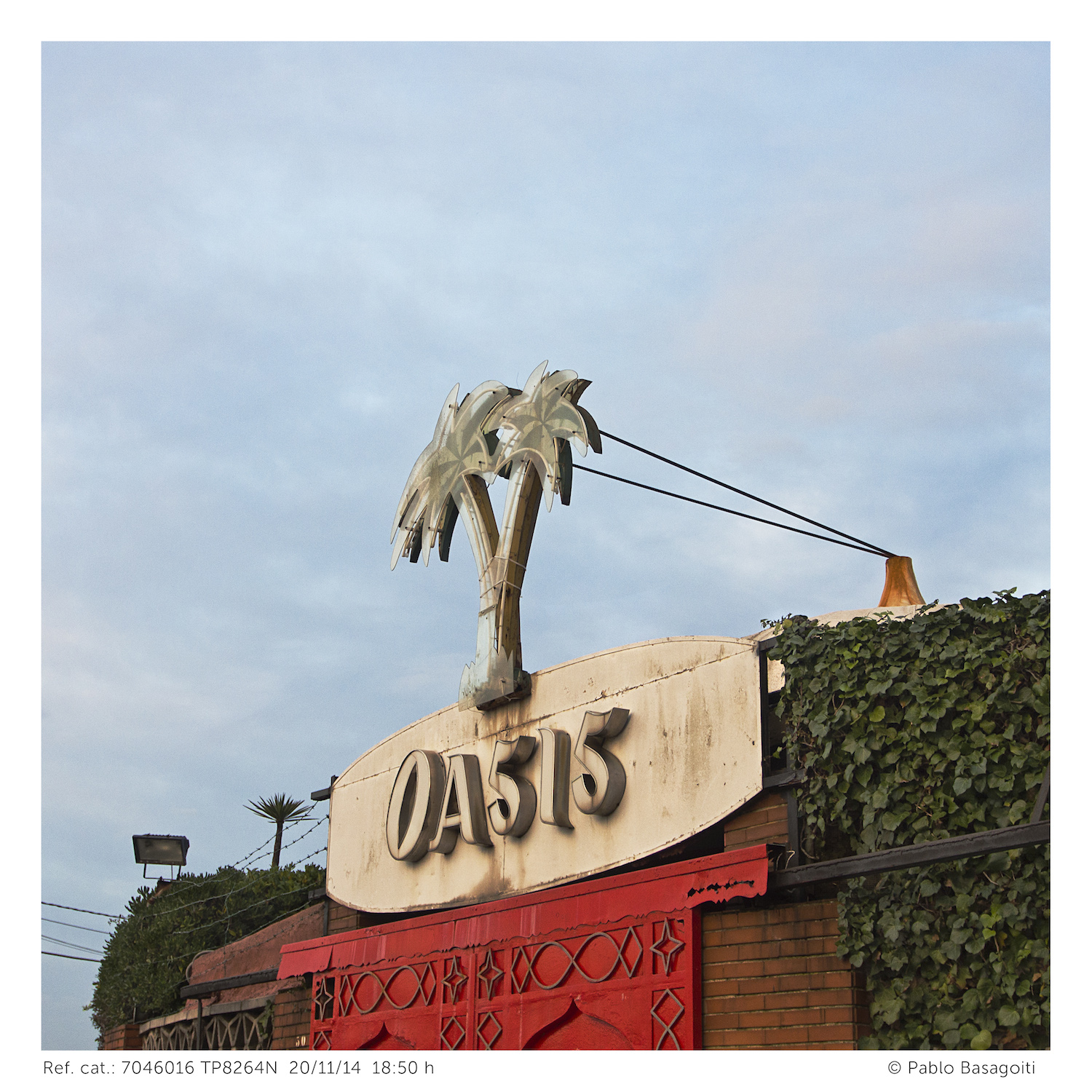 Mientras encuadro la toma de la fachada principal, una tarde soleada de otoño, alguien llama mi atención a la pregunta de ¿qué hace usted? Le explico que documento la ciudad para un proyecto más amplio que pretende ser una radiografía de la ciudad y que, por tanto, me interesa fotografiar el Oasis antes de que desaparezca. Para mi sorpresa, aquel hombre resultó ser el propietario de ese emblemático establecimiento y me invitó a fotografiarlo por dentro antes de que fuese derribado.