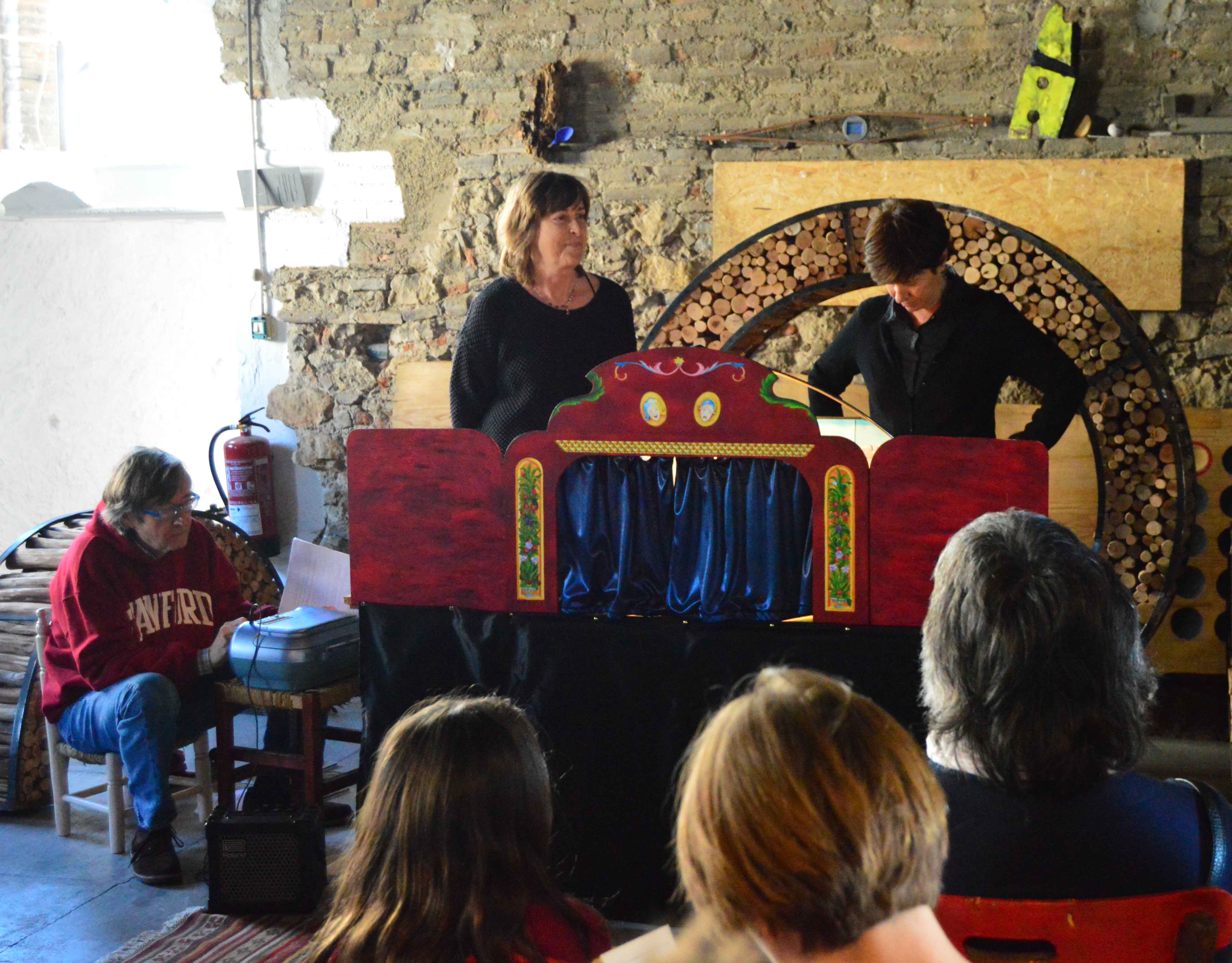 Entranyable actuació de la COMPANYIA GUAN-LU que amb les seves marionetes de fils ens va representar el conte “La Rosa de Sant Jordi“, escrita per Josep Albanell, prolífic autor que va col·laborar en revistes infantils com Cavall Fort, Rodamon i Tretzevents, l’obra del qual ha estat traduïda al coreà, al xinès, a l’afrikaans, a l’anglès, al grec, al francès, a l’italià, al castellà, al gallec, a l’aranès i a l’èuscar. Lupe Martínez, de la companyia ens va explicar que els personatges creats amb molta cura per ells mateixos han estat inspirats de les il·lustracions de Roser Capdevila, autora entre d’altres de les arxiconegudes “tres Bessones”.