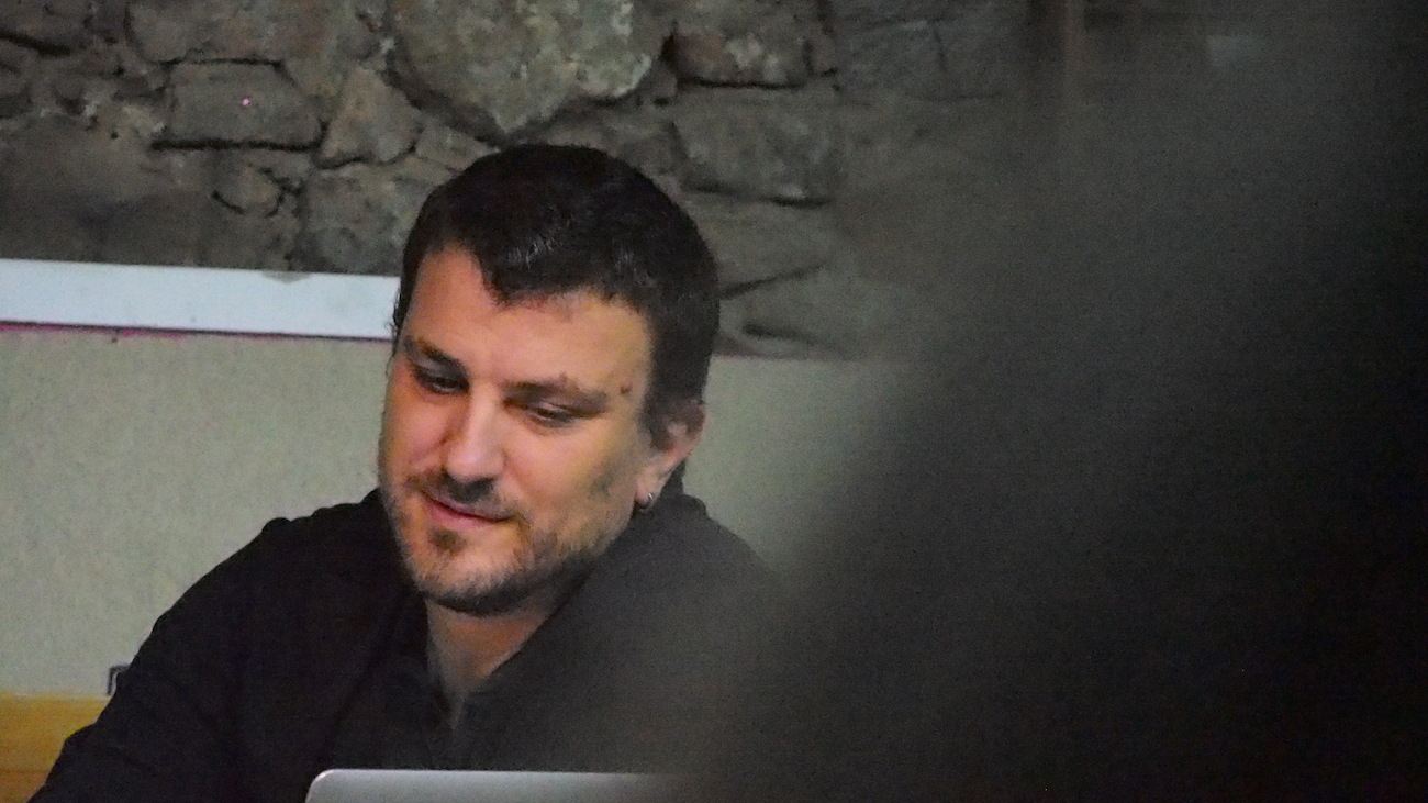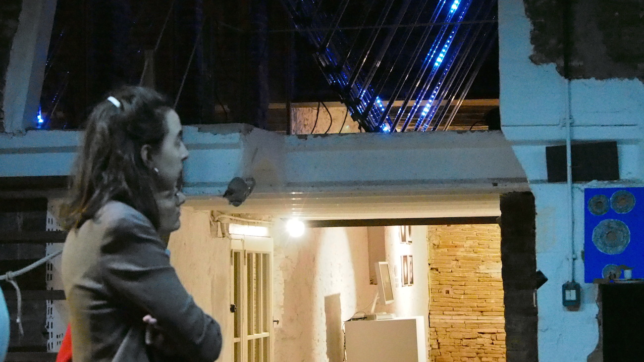 Aquest dissabte, a l’Espai Tònic vam tenir el plaer de comptar amb Santi Vilanova i Eloi Maduell, integrants de l’equip de recerca audiovisual Playmodes, que ens van fer un repàs de la seva metodologia de treball, així com ens van ensenyar el funcionament intern d’algunes de les seves peces més emblemàtiques, que sens dubte han aconseguit conquistar l’admiració del públic. Playmodes és un referent, d’entrada perquè són un dels grups punteros, sobre coneixements tecnològics, això està clar, però sobretot per la seva manera de treballar, documentant-se amb gran detall sobre història i altres característiques arquitectòniques dels espais a tractar, programant sistemes que generen funcionalitats a mida i que possibiliten la fina sincronització entre llum i so, i a més aquests processos resolts de manera autodidacta. Bé clar, suposo que hauríem de tenir en compte que l’equip està integrat per un expert en disseny i música, un enginyer informàtic, un altre enginyer de sistemes audiovisuals i un arquitecte, Summa cum laude.