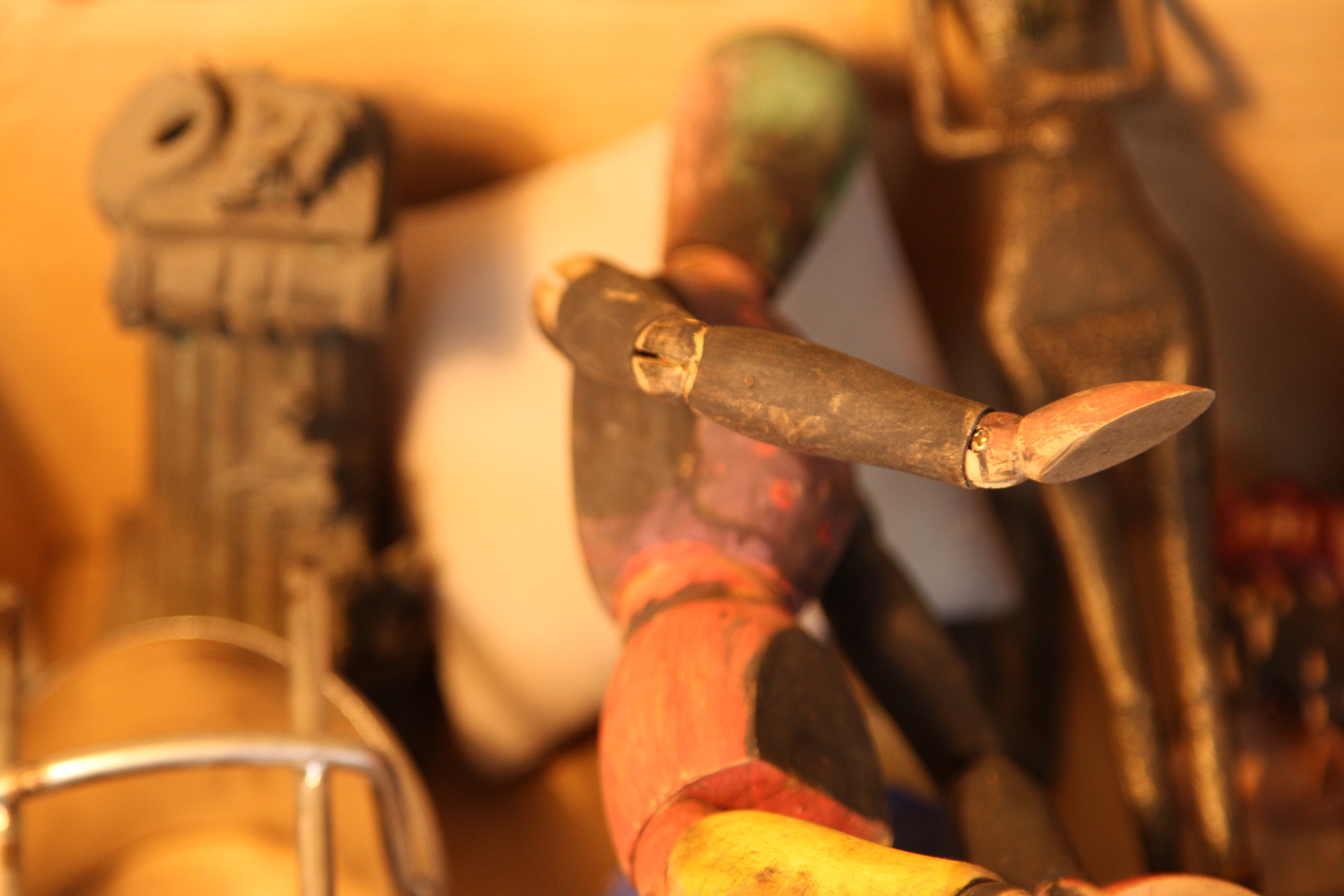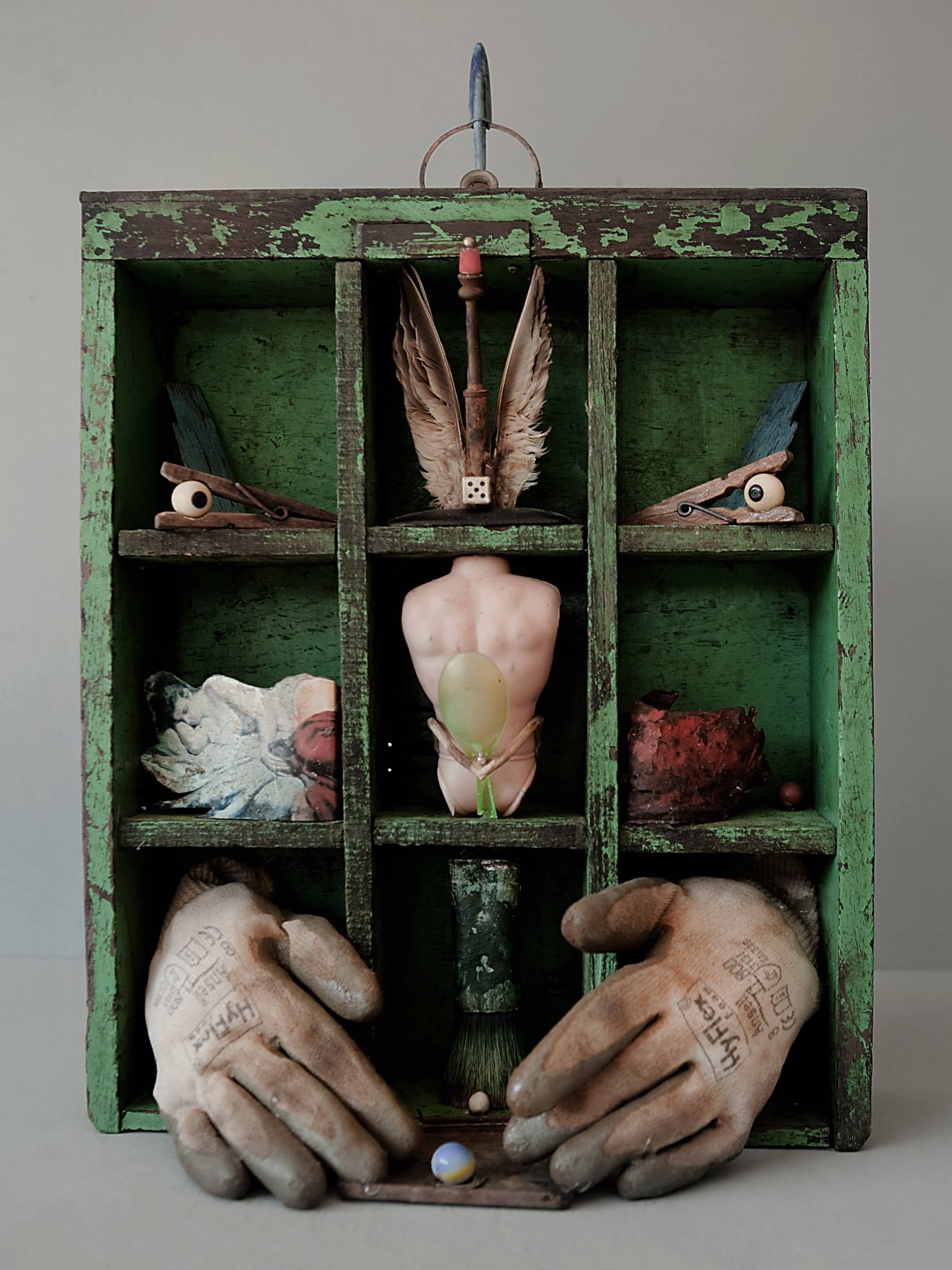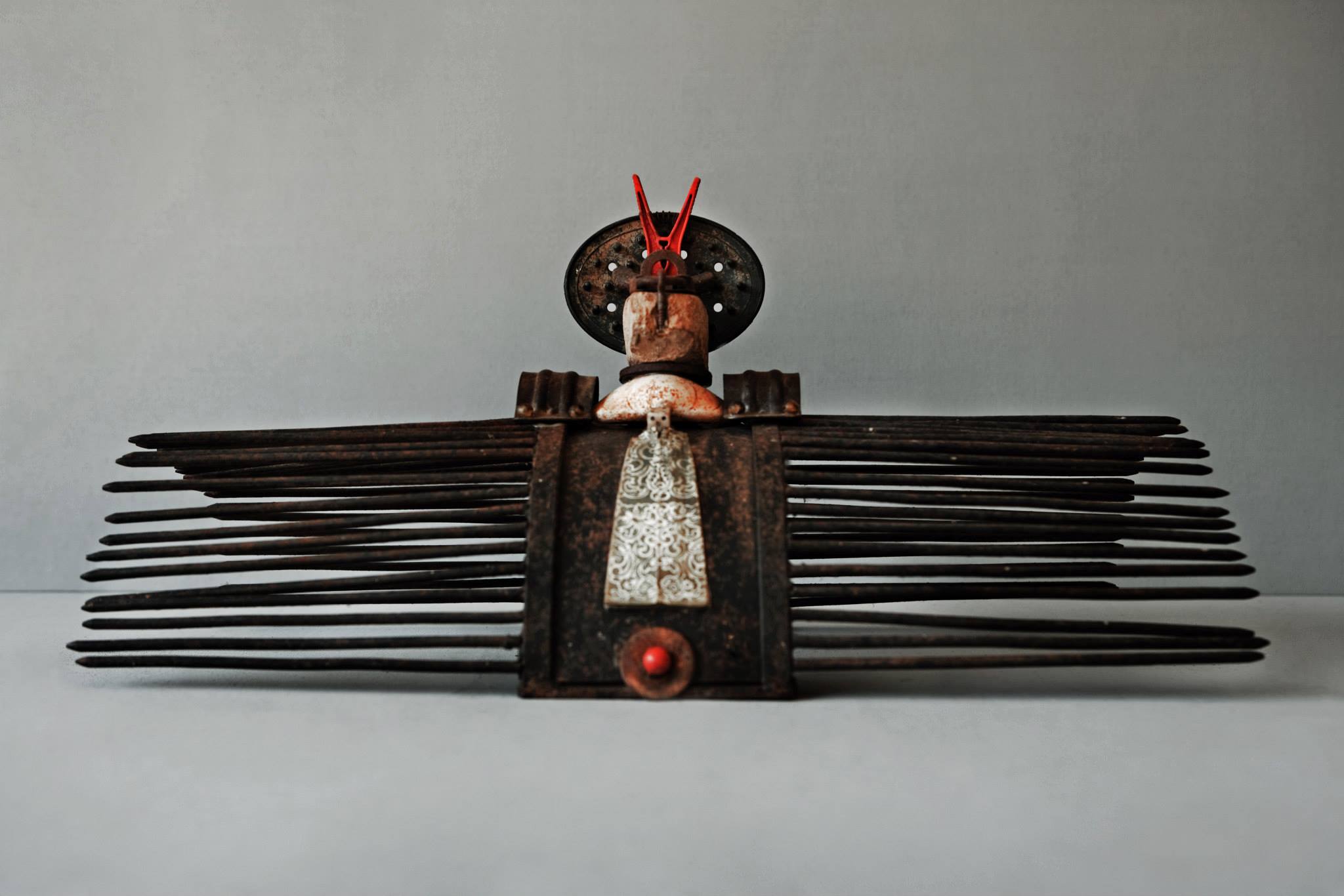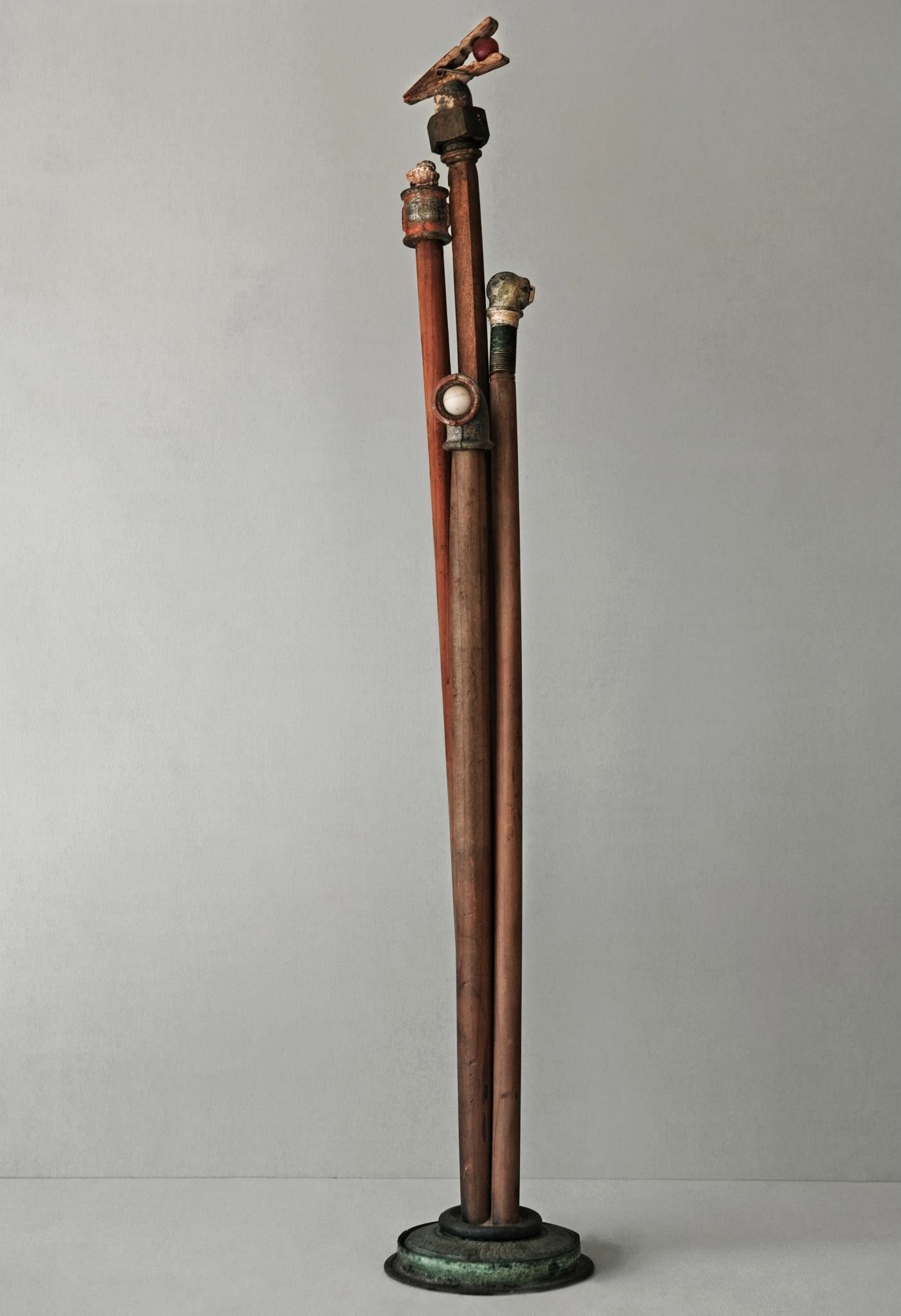 Sostreu del seu entorn, materials com la fusta, pedra i ferros dotats ja de per si d’un interès intrínsec i els aïlla i els dignifica individualment, creant-ne escultures de petit i gran format.