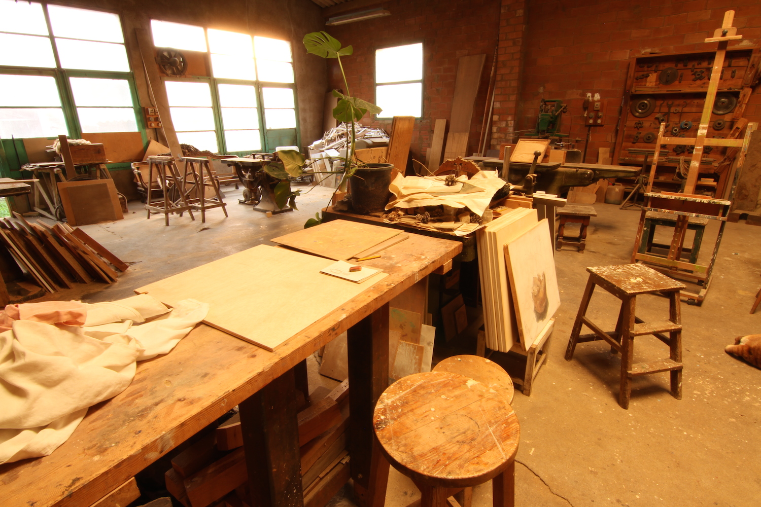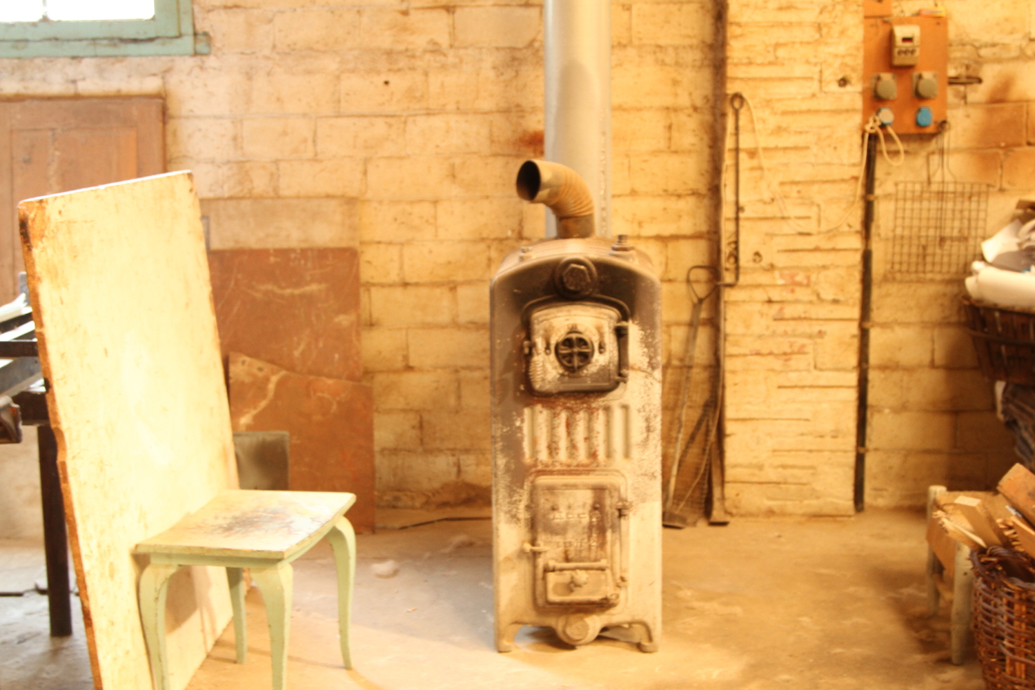 … Al voltant de l’antiga estufa de ferro colat, de l’antic taller de fusteria, Javier Garcés, Pere i els tres membres d’Espai Tònic, ens asseiem relaxadament per a parlar i ultimar detalls de la propera exposició.