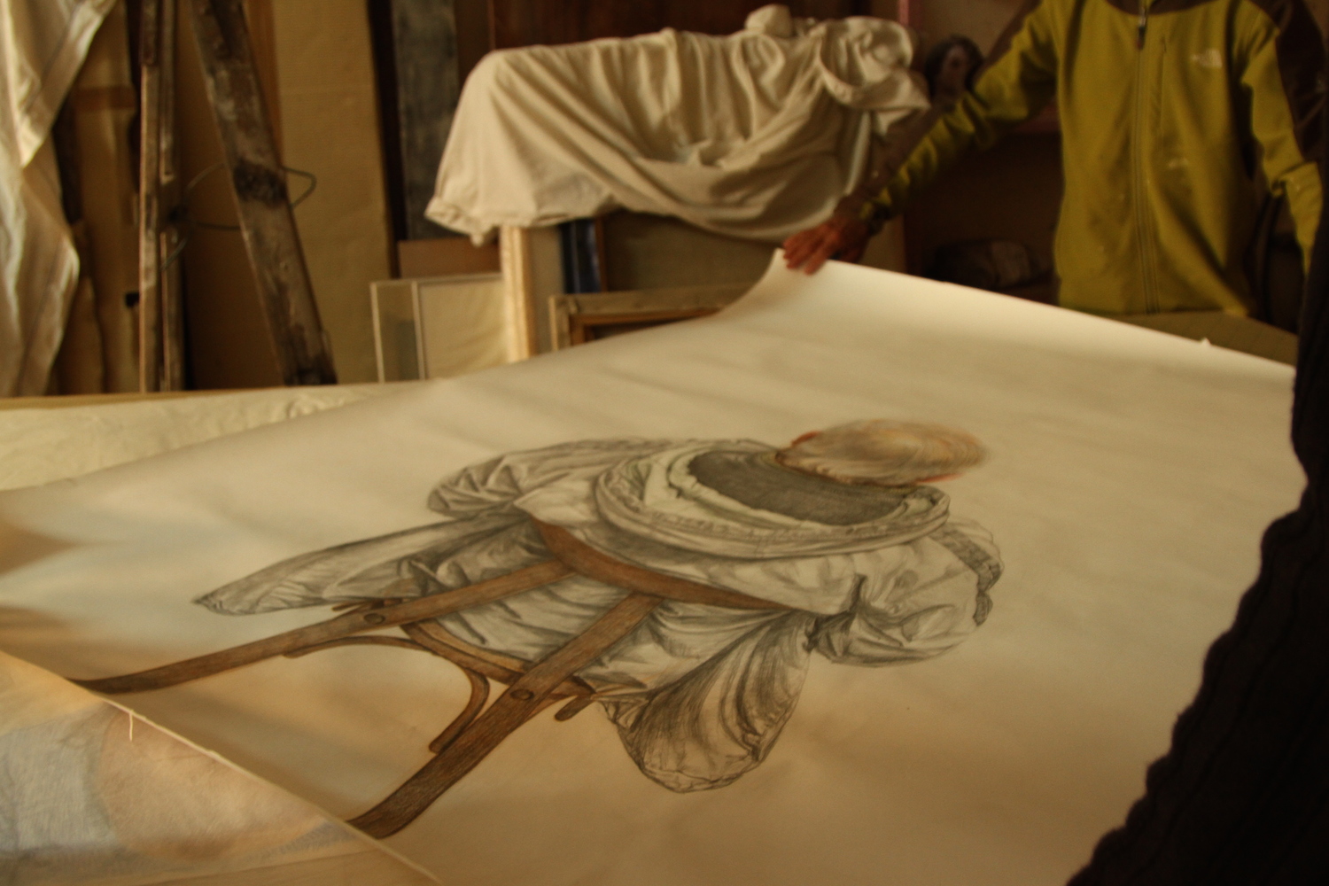 Guillermo: – Parece como que haces escultura, porque tu, con el lápiz no dibujas sino que tallas y das forma.