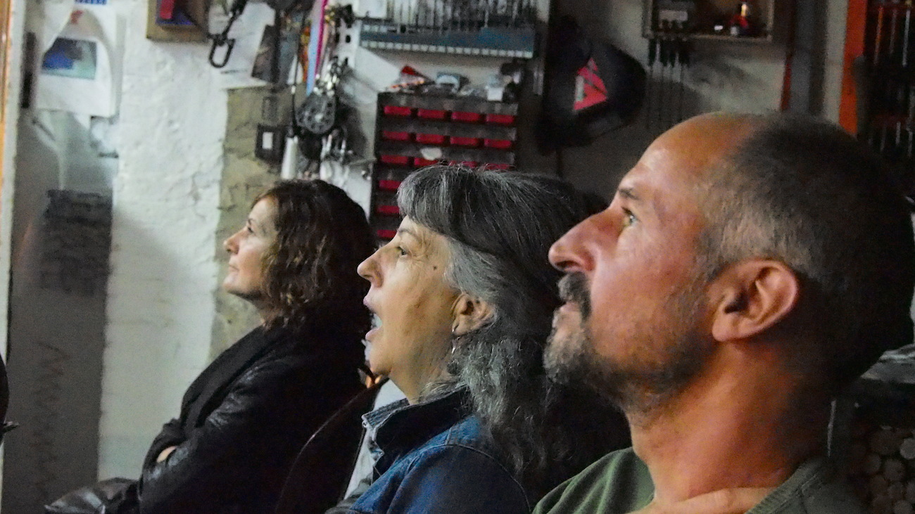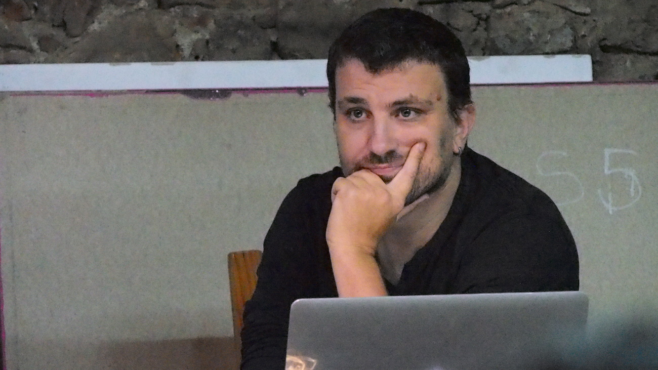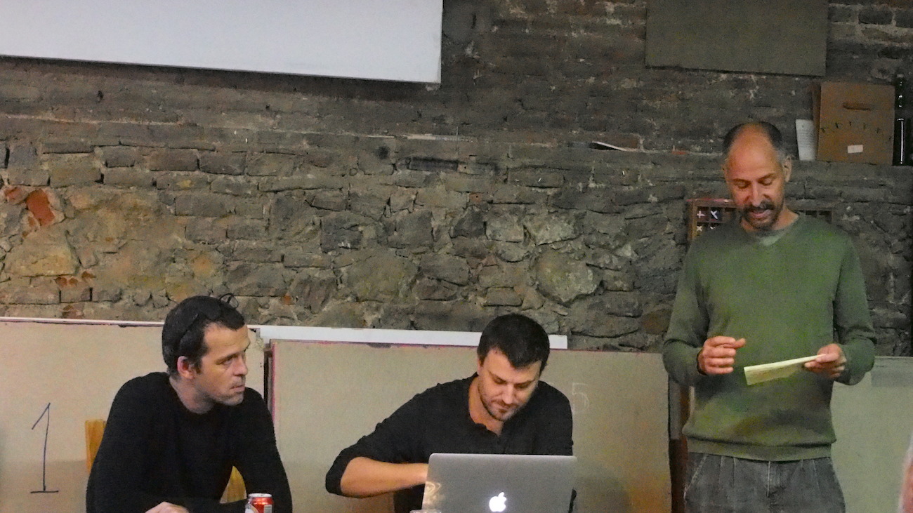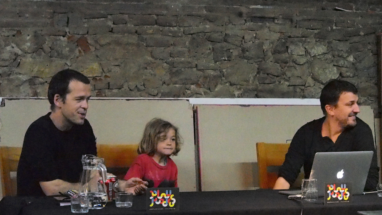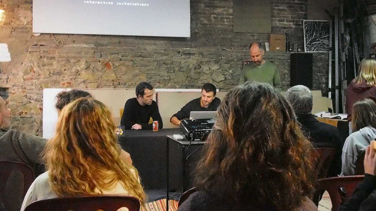 Aquest dissabte, a l’Espai Tònic vam tenir el plaer de comptar amb Santi Vilanova i Eloi Maduell, integrants de l’equip de recerca audiovisual Playmodes, que ens van fer un repàs de la seva metodologia de treball, així com ens van ensenyar el funcionament intern d’algunes de les seves peces més emblemàtiques, que sens dubte han aconseguit conquistar l’admiració del públic. Playmodes és un referent, d’entrada perquè són un dels grups punteros, sobre coneixements tecnològics, això està clar, però sobretot per la seva manera de treballar, documentant-se amb gran detall sobre història i altres característiques arquitectòniques dels espais a tractar, programant sistemes que generen funcionalitats a mida i que possibiliten la fina sincronització entre llum i so, i a més aquests processos resolts de manera autodidacta. Bé clar, suposo que hauríem de tenir en compte que l’equip està integrat per un expert en disseny i música, un enginyer informàtic, un altre enginyer de sistemes audiovisuals i un arquitecte, Summa cum laude.